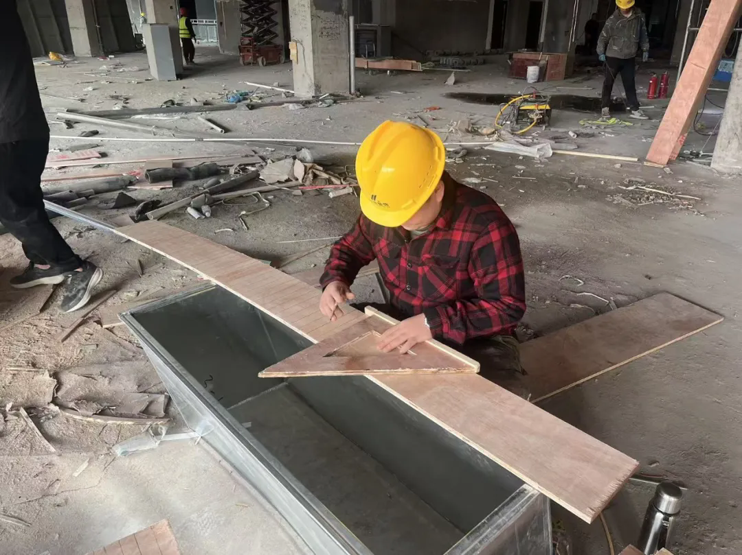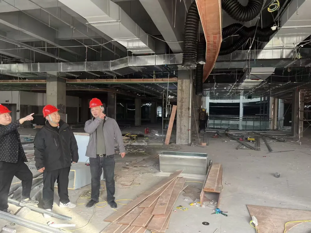 当前项目已进入装修攻坚阶段,现场工人正有序推进各项作业。董事长吕嘉辉鼓励团队:“要以‘精品工程’为目标,把桐城国际项目打造成兰考商业装修的标杆案例。”