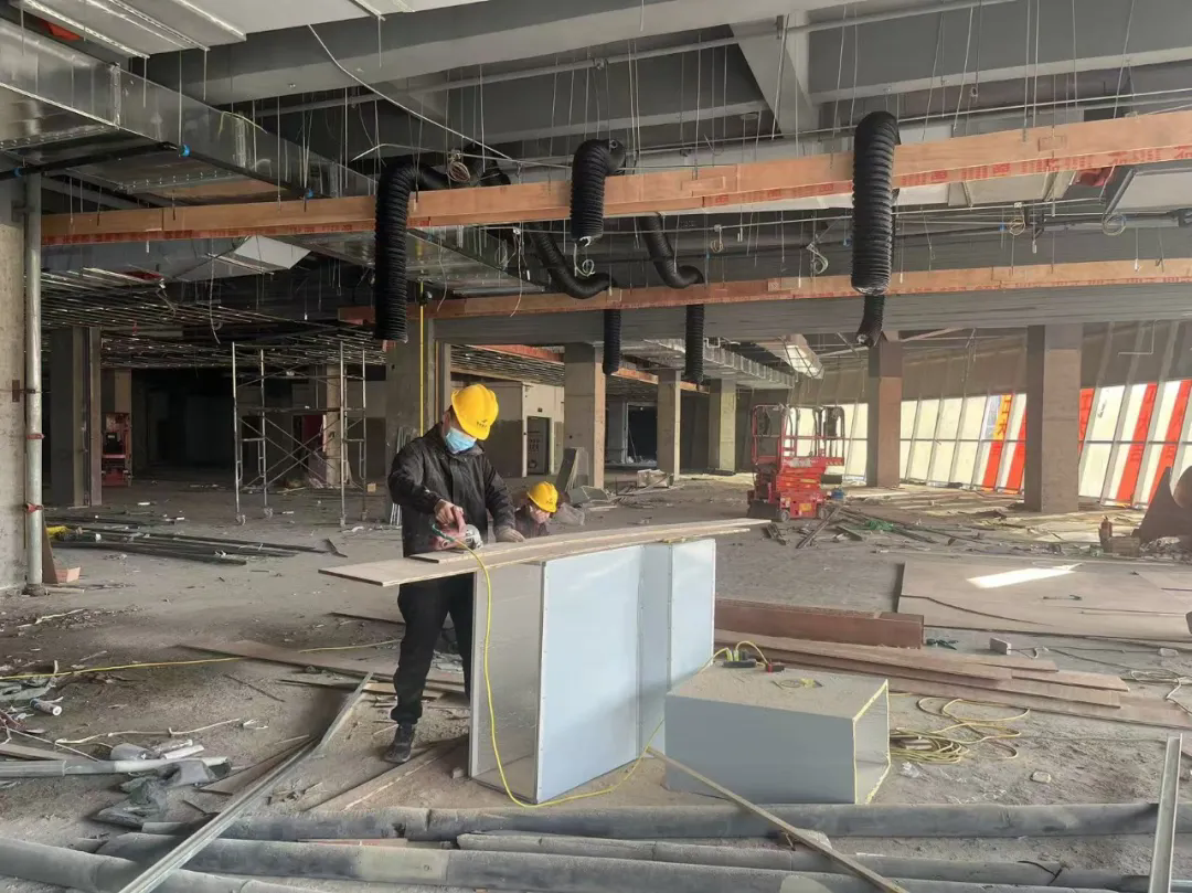当前项目已进入装修攻坚阶段,现场工人正有序推进各项作业。董事长吕嘉辉鼓励团队:“要以‘精品工程’为目标,把桐城国际项目打造成兰考商业装修的标杆案例。”